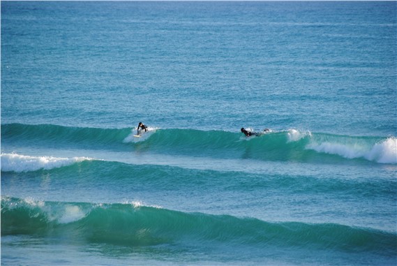 Doğu'da soğuk hava kendini hissettirken Side'de turistler deniz keyfi yapıyor. Bazı turistler de Side Büyük Plaj'da sörf keyfi yaşadı.