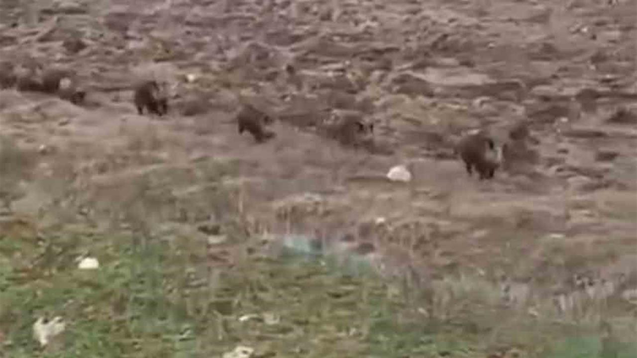 Siirt'in Kurtalan ilçesinde bir domuz sürüsü, yolun karşısına geçerken görüntülendi.