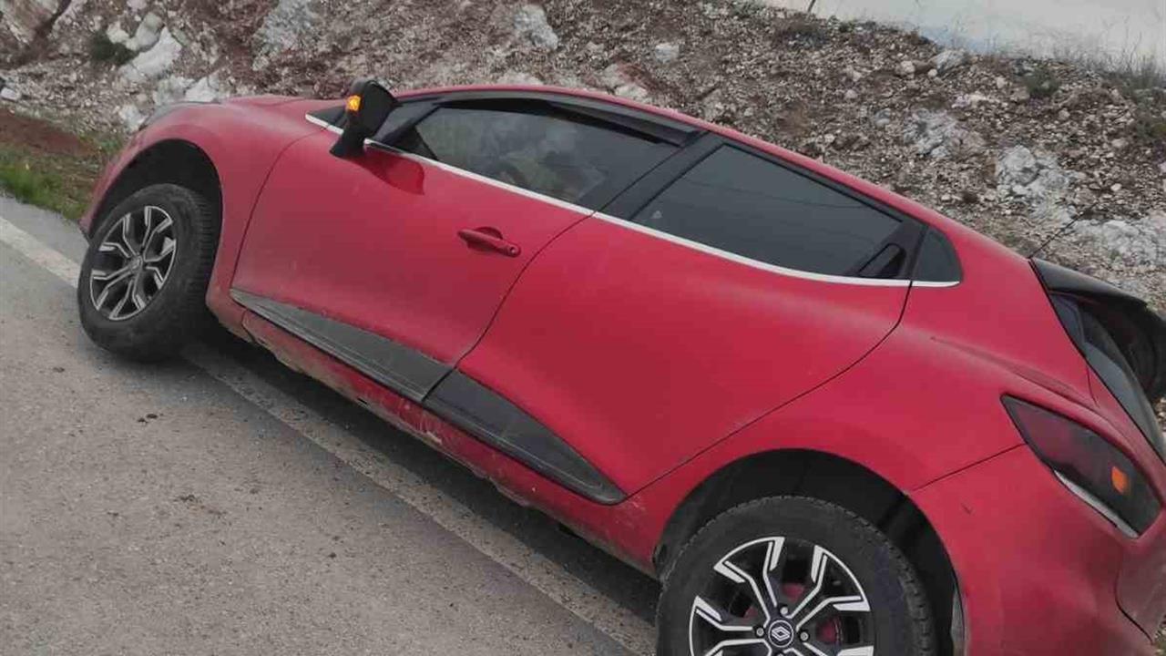 Siirt'in Kurtalan ilçesinde meydana gelen olayda, kontrolden çıkan bir araç yol kenarındaki eğimli alanda askıda kaldı.