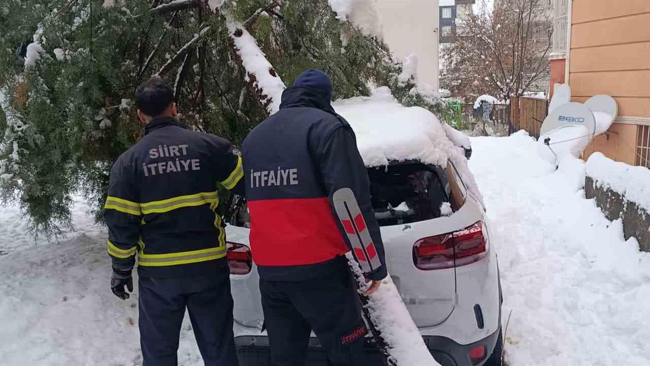 Siirt ilinde etkili olan yoğun kar yağışı, şehir merkezinde birçok olaya neden oldu. Bu durumlardan biri de, karın ağırlığına dayanamayan bir çam ağacının park halindeki bir otomobilin üzerine devrilmesi oldu. Edinilen bilgilere göre, çam ağacı kökünden devrilerek aracın üzerine düştü ve bu durum sonucunda araç kullanılamaz hale geldi.
