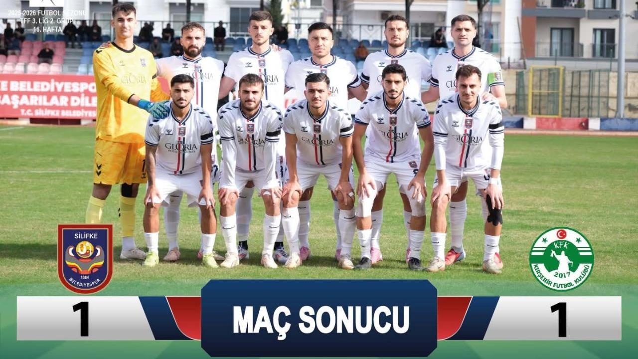 TFF 3. Lig 1. Grup ekiplerinden Silifke Belediyespor, ligin ikincibyarısının ilk haftasında saha ve taraftarlarının önünde konuk ettiği Kırşehir Futbol Kulübü ile 1-1 berabere kaldı.