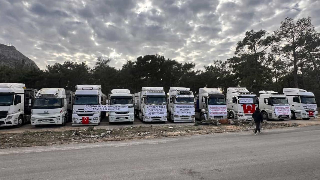 Bölgede yaşayan kamyon şoförleri, fabrikanın nakliye işlerini yerel kooperatifler veya şahıslar yerine şehir dışından gelen taşeron firmalara verdiği iddiasıyla tepki gösterdi. Araçlarını yol kenarına dizen grup, tırların üzerine "Köylü olarak çöp değil iş istiyoruz", "Tozunu biz çekiyoruz sefasını başkaları sürüyor" ve "Taşeron istemiyoruz" yazılı pankartlar astı.