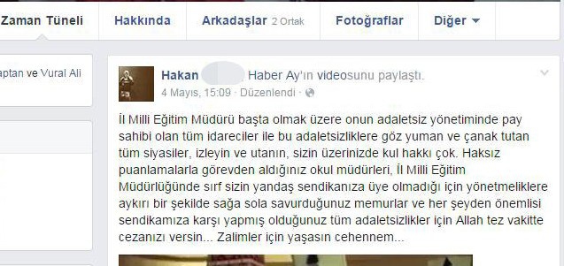Sinop'ta İl Milli Eğitim Müdürü Şaban Karataş'a yönelik silahlı saldırıda bulunan Hakan K., sosyal medya hesabında "Zalimler için yaşasın cehennem" ifadelerini kullandı.
