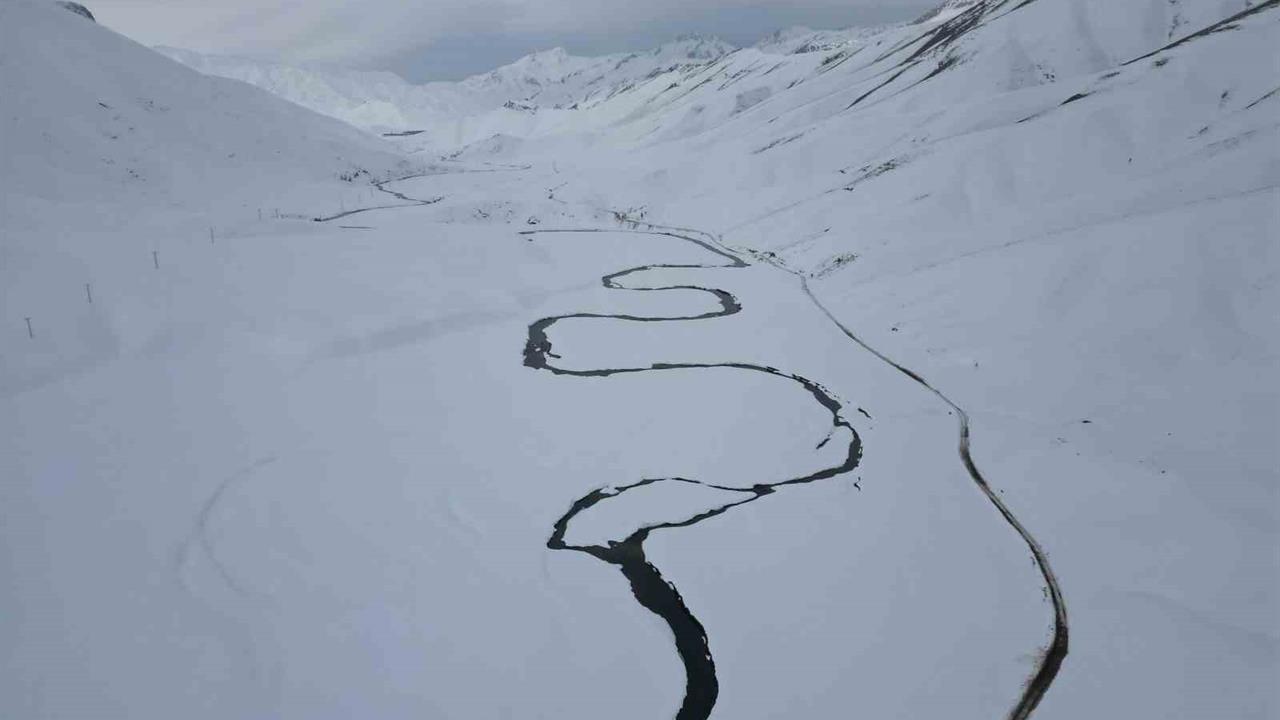 Şırnak’ın Beytüşşebap ilçesine bağlı Yeşilöz Faraşin Yaylası’nda uzanan dev menderesler, kış aylarında buz pistine dönüşüyor ve bu durum yaklaşık 4 ay sürüyor. Havaların ısınmasıyla birlikte, buzların erimesiyle ortaya çıkan görüntüler, dron ile havadan kaydedildi. Beyaz bir gelinlik gibi görünerek kıvrılan dere yatağı, muhteşem bir manzara sunuyor. Kar kalınlığının 3 metreyi bulduğu bu yaylada, sıcaklıkların artmasıyla birlikte yeni dere yatakları her geçen gün belirginleşiyor. Doğanın bu güzellikleri, bölgeye gelen ziyaretçiler için de eşsiz bir deneyim sunuyor.