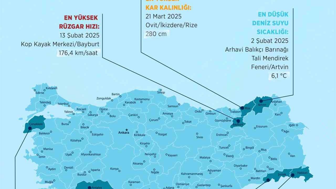 Ayrıca, en yüksek rüzgar hızı da Bayburt’a bağlı Kop Kayak Merkezi’nde kaydedildi. 13 Şubat’ta burada saatte 176,4 kilometre hızla esen rüzgar, meteorolojik açıdan önemli bir veri sağladı. Bu tür yüksek rüzgar hızları, özellikle kış aylarında dikkat edilmesi gereken bir durum olarak öne çıkıyor.