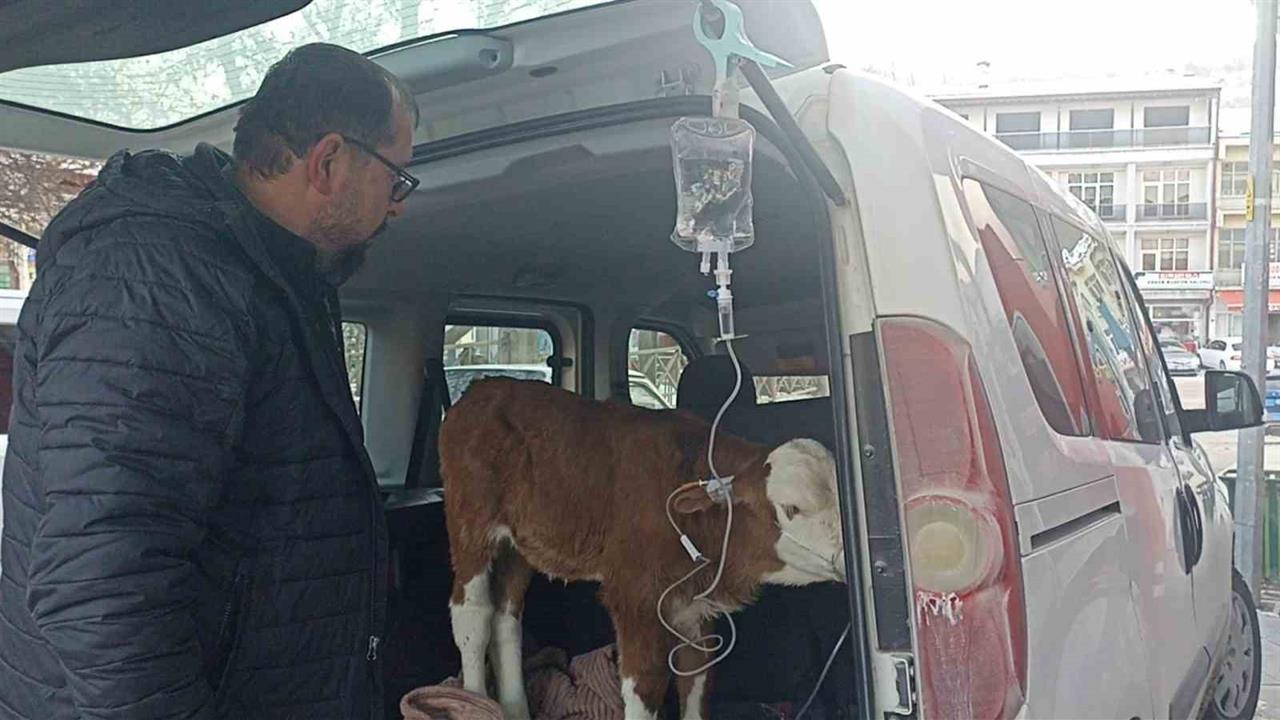 Veteriner hekim Bülent Köse, buzağıya acil müdahaleyi aracın bagajında gerçekleştirdi. Buzağının damar yolu açılarak ilaç verildi ve maske ile oksijen sağlandı. Yapılan müdahalenin ardından buzağının sağlık durumunun düzeldiği bildirildi. Veteriner hekim, buzağının kendine geldiğinde hayati tehlikesinin bulunduğunu ve nabzının 227'nin üzerinde olduğunu ifade etti. Ayrıca, akciğerlerinde oksijen oranının düşük olduğunu belirtti.