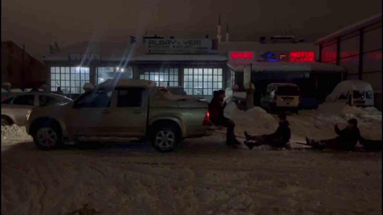 Sivas'ta sanayi sitesinde esnaflık yapan Tanju Kaya, etkili olan kar yağışını eğlenceli bir aktivitelerle değerlendirdi. İş yerinde çalışan çırakları, karın tadını çıkarmak istediklerini ifade edince Kaya, aracının arkasına halat bağlayarak lastiklerin üzerine oturan çırakları karda kaydırmaya karar verdi. Beyaz örtüyle kaplanan sanayi sitesi, bu eğlenceli anlara ev sahipliği yaptı. Çıraklar, karda kaymanın keyfini çıkararak unutulmaz anlar yaşadı.