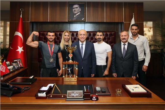 Yenimahalle Belediyesi Hacı Sabancı Yüzme Havuzu ve Spor Tesisleri’nde fitness antrenörlüğü yapan Turan kupasını da alarak, çalıştırıcısı Murat Ağbaba ile birlikte Yenimahalle Belediye Başkanı Fethi Yaşar’ı makamında ziyaret etti.