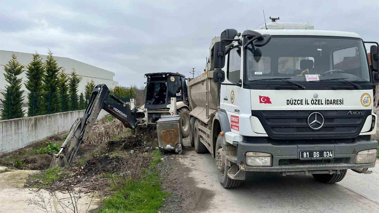 Düzce'nin Selamlar köyünde yapılan su tahliye kanalları temizliği, taşkın riskinin azaltılması amacıyla gerçekleştirildi.