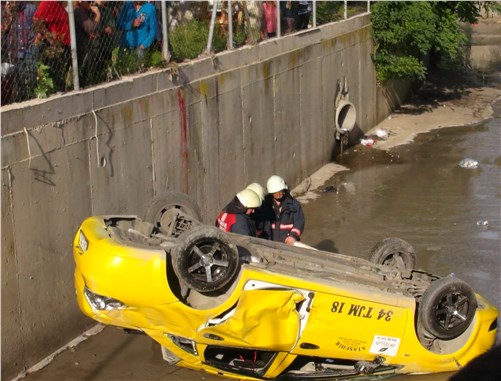 İSTANBUL - Ataşehir'de içinde 2 yolcu bulunan bir taksi dereye düştü. Takla atarak ters dönen taksideki 3 kişi yaralandı. Vatandaşların yardımı ile çıkarılan yaralılar, ambulanslarla çevredeki hastanelere kaldırıldı.