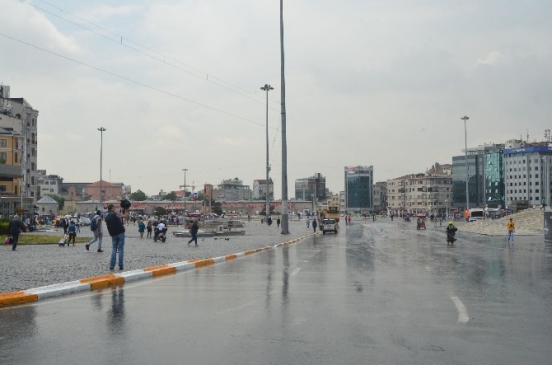Taksim’de öğle saatlerinde meydana gelen ani yağmur, vatandaşların zor anlar yaşamasına neden oldu. Aniden bastıran yağmurdan kaçışan vatandaşlar, kapalı alanlara sığınmaya çalıştı. Beklenmedik yağış sırasında bazı kişiler şemsiyeleriyle korunurken, diğerleri poşet ve bez parçalarıyla kendilerini koruma altına almaya çalıştı. Kısa sürede etkisini kaybeden yağmur, yerini güneşli bir havaya bıraktı.