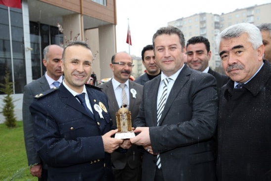 Talas Belediye Başkanı Mustafa Palancıoğlu, ilçedeki Emniyet Müdürlüğü binasının çevre düzenlemesi ve parkını tamamlayarak Türk Polis Teşkilatı’nın 170. yıl dönümünde anlamlı bir hediye sundu. Başkan Palancıoğlu, AK Parti İlçe Başkanı Ragıp Dost ve birim müdürleriyle birlikte Talas İlçe Emniyet Müdürü Kenan Öztaş’ı ziyaret etti. Ziyaret sırasında, Başkan Palancıoğlu minik çocuklarla ilgilenerek hatıra fotoğrafı çektirdi. Daha sonra, belediye tarafından düzenlenen ve fidanlarla donatılan parkta incelemelerde bulundu. Emniyet binasına geçerek burada görev yapan personele "Polis Haftası" ve Türk Polis Teşkilatı’nın kuruluş yıl dönümünü kutladı. Başkan Palancıoğlu, verilen kokteyle katıldıktan sonra, Emniyet Teşkilatı’nın önemini vurgulayarak, "Vatandaşlarımızın güvenliğinden sorumlu olan Emniyet Teşkilatımıza günün anısına yaptığımız park ve fidanları hediye ettik. Emniyetimize yakışan bir çevre düzenlemesi oldu. Binanın arsası belediyemize aitti ve bu proje ilçemize yakışır güzellikte tamamlandı. Bir ülkede güvenlik sağlandığı sürece ekonomik kalkınma ve huzur olur. Bu vesileyle vatandaşlarımızın birlik ve beraberliği için polis teşkilatımızla beraber çalışmaya devam edeceğiz," dedi. Ayrıca, Başkan Palancıoğlu, İlçe Emniyet Müdürü Kenan Öztaş’a Osmanlı seraskerlerinden Talaslı Ali Saip Paşa’nın annesi olan Esma Hatun türbe maketini hediye etti.