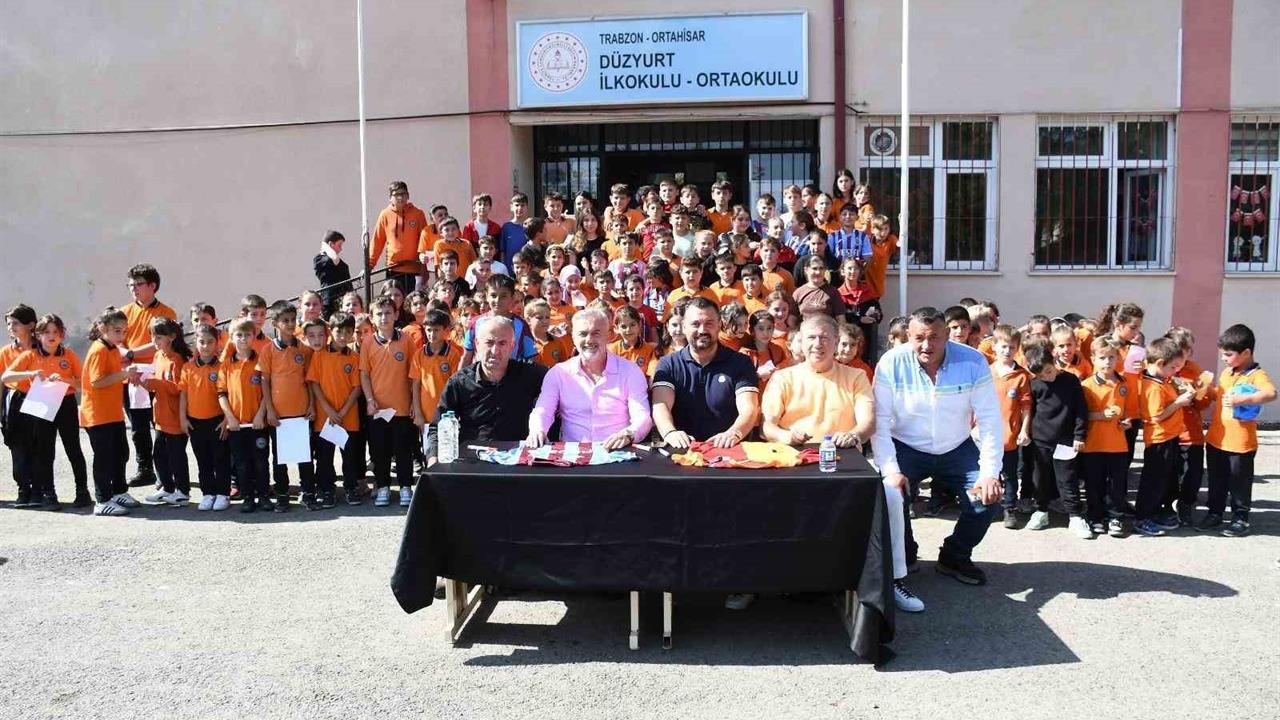 Öğrencilerle bol bol fotoğraf çektiren Çolak ve Mandıralı, iş insanı Necati Kazaz’ın hediye ettiği formaları imzaladı.