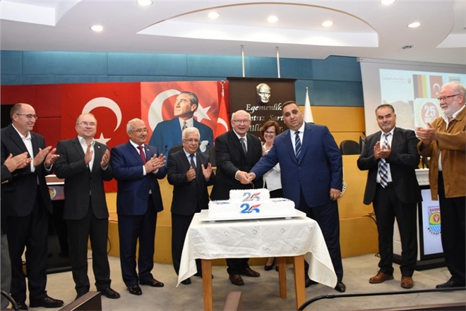 25 yılın önemine değinen Başkan Can, “Çeyrek asırdır şehirlerimiz arasında gelişen kardeşlik projesi sayesinde bugüne dek iyi bir aile ortamı ve dostane ilişkilerin geliştirilebildiği kanısındayım. Aradaki dil, coğrafik uzaklık ve kültürel farklılıkların yanısıra, son 2 yıldır süregelen politik gerginliğe rağmen, kardeşlik ilişkisinde arzu edilebilecek noktaya erişebildiğimizi düşünüyorum. İki ülke arasındaki ilişkiler, tarihsel sürece bakarak çok yönlü bir seyir izleyegeldi. Ancak, yaklaşık 3 milyon insanımızın yaşadığı Almanya ile Türkiye arasındaki kardeş kentler projesinin yine de düşük düzeyde kaldığını düşünüyorum. İki ülke arasındaki kardeş kentler sıralamasında, ilk 8. basamakta olmasını ise, kentimiz adına olumlu bir durum olarak değerlendiriyorum. Anımsanacağı gibi, kentlerimiz arasındaki kardeş şehir sözleşmesi 26 Nisan 1991 tarihinde imzalanmıştı. Kentlerimiz arasındaki bu ilişki ağından sonra, iki ülke arasında benzeri projelere ardarda yeni halkalar eklenmiş olması da, sevindiricidir. Bu sıralamaya, daha sonra Langen’in de dahil olduğu Hessen eyaletinin, Bursa ilimiz ile benzeri kapsamda bir bölgesel kardeşlik işbirliğine yönelmesi de, kayda değer olumlu bir gelişme olduğunu düşünüyorum. Bu mevcut ilişki ağı üzerine eklenecek yeni proje desenleri ile, iki toplum arasındaki dostane temaslara yeni dokular kazandırılmasını, toplumların kaynaşmasını arzu ediyorum. Bu vesileyle, bugün bizleri biraraya getiren 25. kardeşlik Yılımızı kutluyor, bu heyecan ve dinamizmin gelecekte de yeni filizler vermesini, büyümesini ve geleceğe yeni çiçekler salmasını temenni ediyorum” dedi.