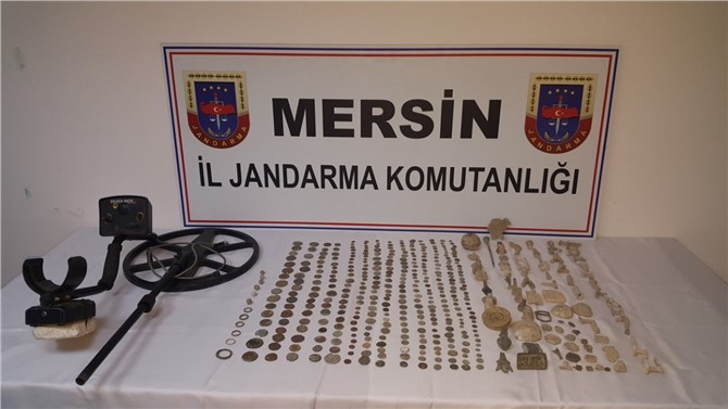 Tarsus İlçe Jandarma Komutanlığınca yapılan istihbari çalışmalar neticesinde, Köselerli mahallesinde İ.M.isimli şahsın tarihi eser kaçakçılığı yaptığı bilgisi alınarak adli makamlardan alınan karar doğrultusunda şüpheli şahsın evinde yapılan aramada; (1) adet çivi, (6) adet yüzük, (8) adet mühür, (24) adet taş obje, (76) adet metal obje, (1) adet ok ucu ve (355) adet sikke olmak üzere toplam (471) adet çeşitli dönemlere ait tarihi eser ile (1) adet detektör ele geçirilmiştir.