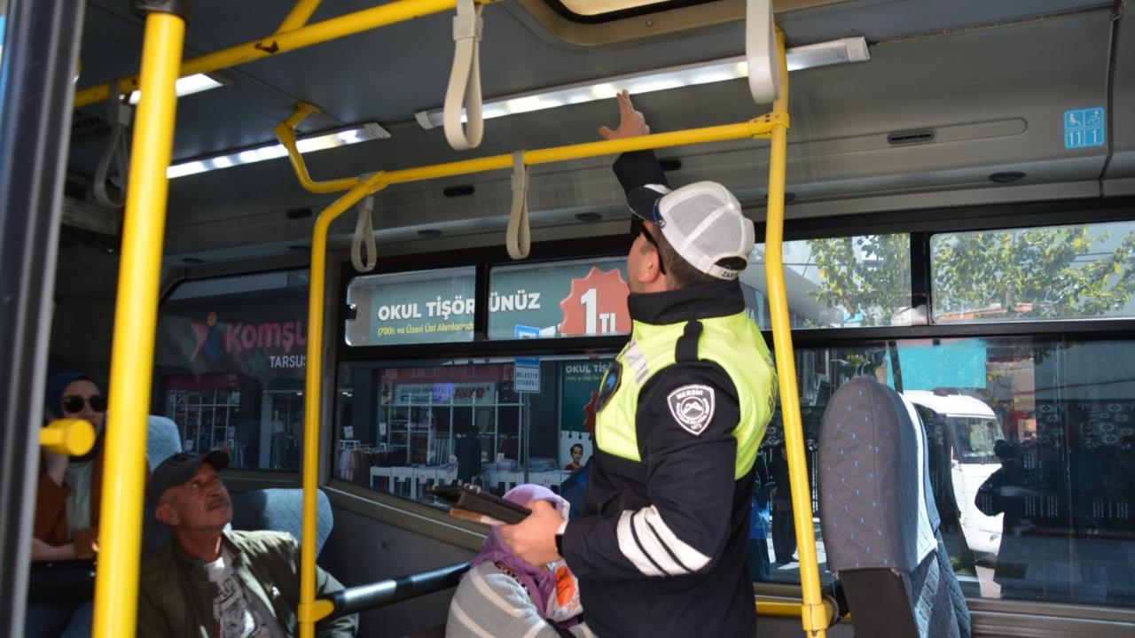 Mersin Büyükşehir Zabıtası tarafından, yaklaşan Bayram öncesinde Tarsus’ta Halk Eğitim Merkezi arkası İstiklal Caddesi üzerinde bulunan durakta tüm toplu araçlarına yönelik uygulama gerçekleştirildi.
