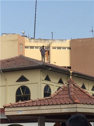 Polis emniyet güçlerinin müdahalesi ile ikna edilerek aşağıya indi.