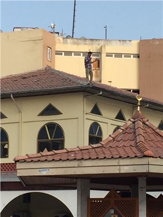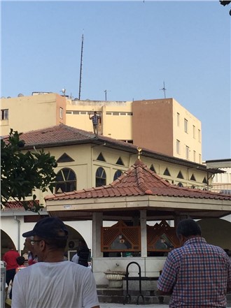 TARSUS’ta Küçük Minare Cami çatısına çıkan kimliği öğrenilemeyen şahıs, intihar girişiminde bulundu.