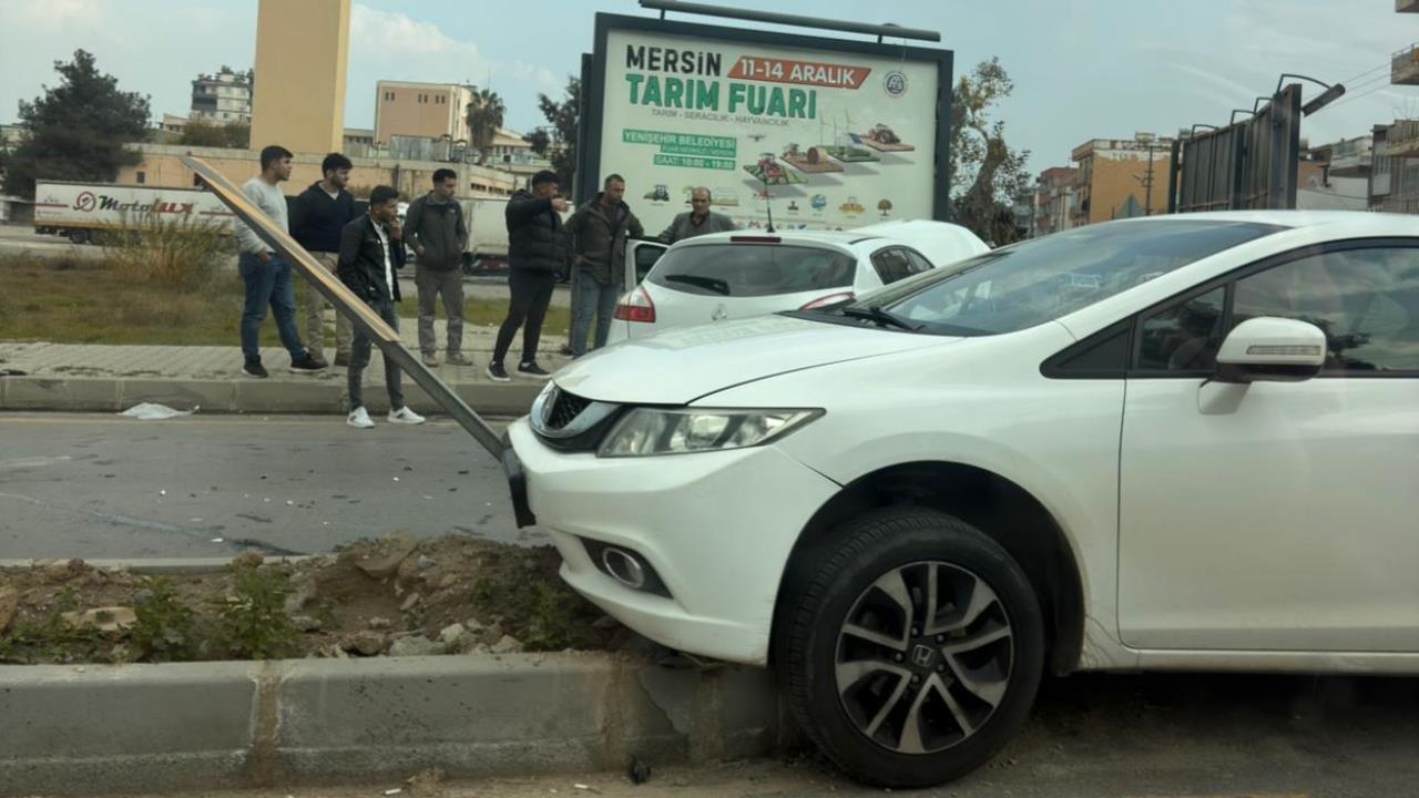 İki otomobilin kavşak içerisinde henüz belirlenemeyen bir nedenle çarpışması sonucu araçlarda büyük çapta maddi hasar oluştu. Çarpışmanın etkisiyle savrulan araçlardan biri, hızını alamayarak orta refüje çıktı. Araç, refüjde bulunan trafik levhalarına çarparak durabildi.
