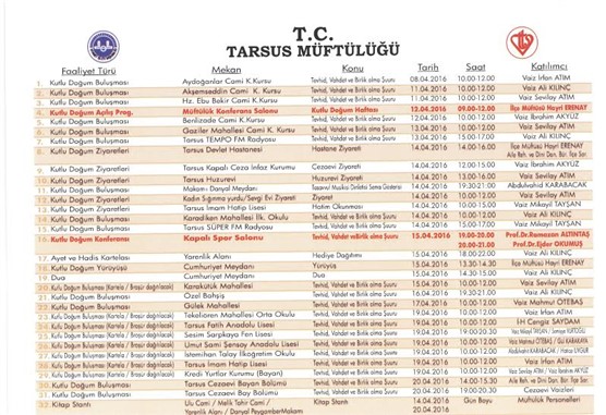 Program, Müftümüz Hayri ERENAY’ın 2016 Kutlu Doğum Haftasında icra edilecek programların yer ve tarihlerini belirtmesinin ardından dua ile son buldu.