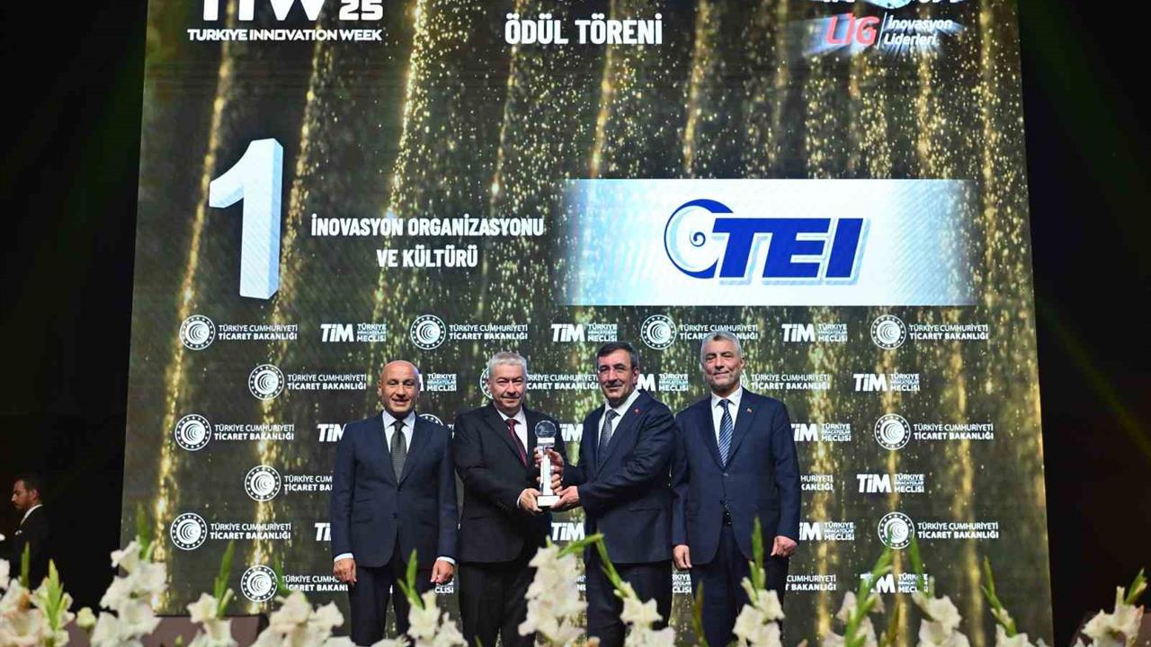 Ticaret Bakanlığının desteğiyle gerçekleştirilen Türkiye Innovation Week'in son gününde düzenlenen ödül töreninde, TEI'nin ödülünü İş Geliştirme ve Satış Genel Müdür Yardımcısı Ahmet Kain, Cumhurbaşkanı Yardımcısı Cevdet Yılmaz ve Ticaret Bakanı Prof. Dr. Ömer Bolat’tan aldı.