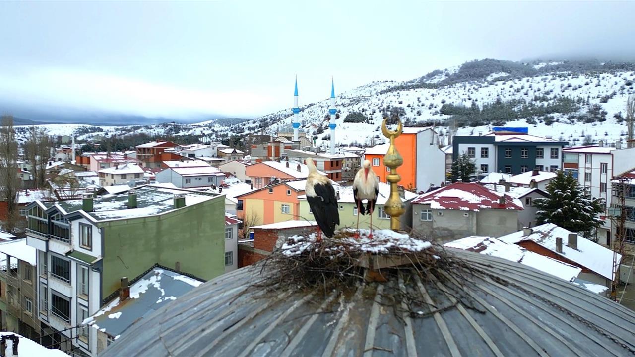 Tokat’ın Başçiftlik ilçesinde, nisan ayının gelmesiyle birlikte etkili olan kar yağışı, baharın habercisi olan leyleklerin geri dönüşünü ilginç bir şekilde etkiledi. Uzun bir süre boyunca ilçeye uğramayan leylekler, 25 yıl aradan sonra yuva kurmak için geri döndüler. Kar yağışının ardından, ilçe merkezinde yer alan bir caminin kubbesine yuva yapan leylek ailesi, beyaza bürünmüş manzaralar oluşturdu. Dron ile havadan çekilen görüntüler, leyleklerin yuvalarının etrafındaki karla kaplı çatılarla birleşerek oldukça etkileyici bir tablo oluşturdu.