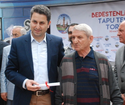 Bedestenlioğlu Tapusuz Evler Yardımlaşma ve Dayanışma Derneği Başkanı Fazlı Akdağ da, ruhsatı olmayan 300 evden 36'sının tapusunun alınmasında emeği geçen Başkan Eroğlu’na teşekkür etti. Başkan Eroğlu, tapu sorunun çözülmesi için belediye meclisi ve imar işleri müdürlüğünün çalışmalarıyla önemli adımlar atıldığını vurguladı. Mart ayında 300 konutun tapu ve ruhsatlarının verilmesiyle ilgili karar aldıklarını belirten Eroğlu, 36 evin tapusunun hazırlanmakta olduğunu, diğer konutların tapuları için çalışmaların devam ettiğini açıkladı.