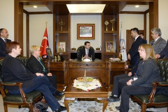 Tokat Belediye Başkanı Eyüp Eroğlu, Avrupa Birliği Gençlik Programları kapsamında Almanya'dan gelen öğrenci grubunu makamında ağırladı. 7-16 Nisan tarihleri arasında Tokat'ta resmi ziyaretler yapacak olan öğrenciler, Gazi Osman Paşa Lisesi ile Lauenburg/Elbe şehri arasında gerçekleştirilen öğrenci değişim programı çerçevesinde hem tarihi yerleri keşfedecekler hem de okulda derslere katılacaklar. Alman öğrenciler, Tokat’ı 2 yıl aradan sonra tekrar ziyaret etmenin heyecanını yaşarken, şehrin gelişimi hakkında olumlu izlenimlerini aktardılar. GOP Bulvarı’ndaki aydınlatma sisteminin etkileyici olduğunu belirten bir temsilci, bu durumu Almanya'daki yetkililere anlatacaklarını ifade etti. Başkan Eroğlu, misafirlere yöresel ürünlerden oluşan hediyeler takdim ederek dostluklarını pekiştirdi. Ayrıca, “Dünü anlamak, bugünü yaşamak, yarını tasarlamak” temalı proje kapsamında Tokat’ı ziyaret eden grup, Amasya ve Trabzon'a da seyahat gerçekleştirecek.