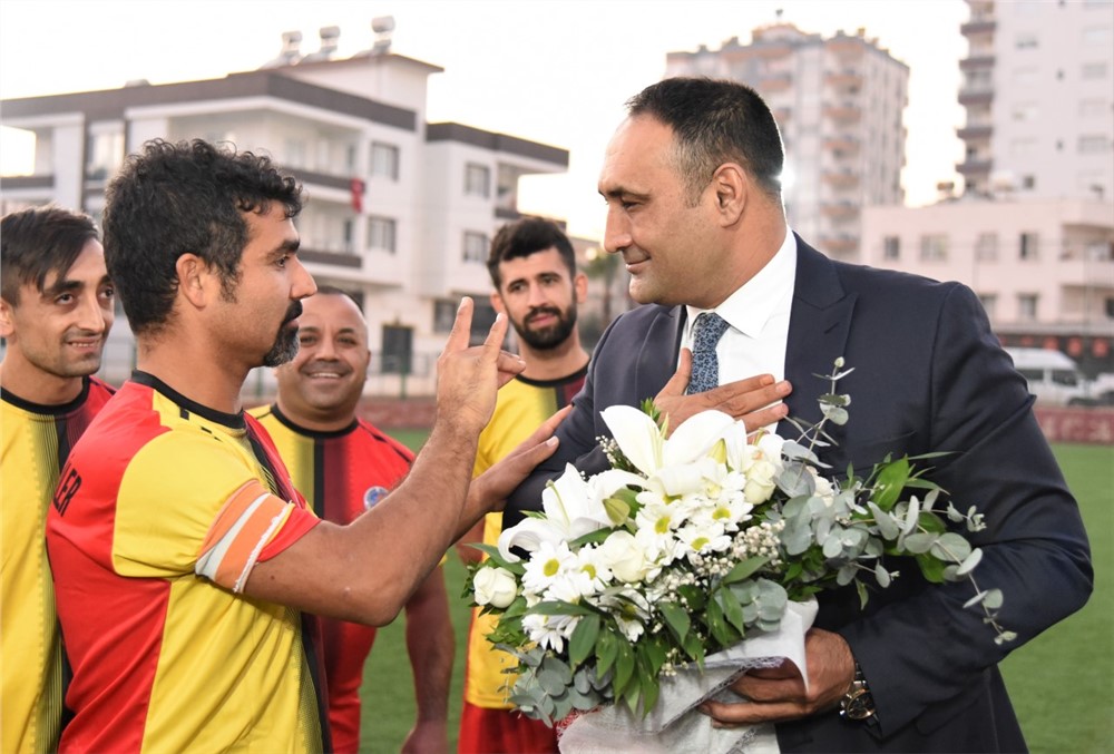 Toroslar Belediyesi Spor İşleri Müdürü ve FİFA Eski Hakemi Vedat Yüksel’in yönettiği maçta sporcuları centilmence oyunlarından dolayı da tebrik eden Başkan Yılmaz, “Dünya Engelliler Günü’nde işitme engelli kardeşlerimizin oynadığı futbol müsabakasına konuk olduk. Güzel bir maç keyfi yaşadık. Sevgi, dayanışma ve kaynaşmanın öne çıktığı bir dostluk maçı izledik. Engelli olmanın başarı sağlamaya engel olmadığını gözler önüne seren sporcularımızı yeniden tebrik ediyor, başarılarının devamını diliyorum. Toroslar Belediyesi olarak engelli bireylerin her zaman yanında olacağız ve destekleyeceğiz. Hayatı paylaşmak için hiçbir engel yok. Tek amacımız var. O da hep birlikte huzurlu ve mutlu yaşamak” dedi.