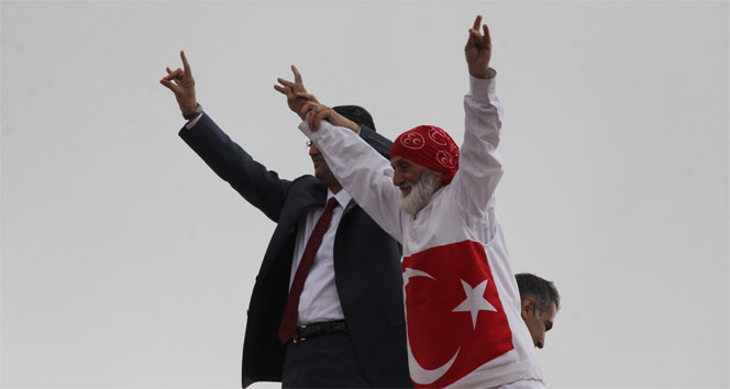 Erzurum'daki mitingde de dikkatleri üzerine çeken Bayrak Dede, katılımcılar tarafından ilgiyle karşılandı.