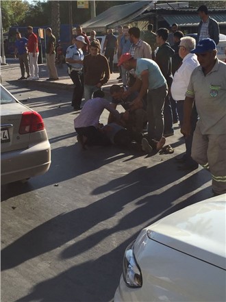 Bisikleti fark eden aracın sürücüsü , bisiklete çarpmamak için manevra yaptı, bisiklete de çarptıktan sonra park halinde bekleyen araca çarparak duran aracın sürücüsü, kendini aracın dışına atarken, çarptığı bisiklet sürücüsünün yanına giderek durumunu kontrol etti.