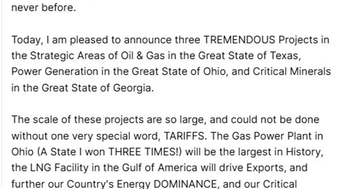 Ohio'da, Japonya ile birlikte tarihin en büyük doğalgaz santralinin kurulacağını belirten Lutnick, "Bu santral 9,2 gigawatt elektrik üretecek. Böylelikle, şebeke güvenilirliğini artıracak, baz yük gücünü genişletecek ve uygun fiyatlı enerji ile Amerikan imalatını destekleyeceğiz" açıklamasında bulundu. Amerika Körfezi’nde kritik öneme sahip bir derin su ham petrol ihracat tesisi inşa edileceği bilgisini veren Lutnick, "Bu projenin ABD’nin ham petrol ihracatına yıllık 20-30 milyar dolarlık katkı sağlaması bekleniyor" değerlendirmesinde bulundu. Üçüncü projede ise ABD’nin sentetik endüstriyel elmas üretim kapasitesinin artırılacağına dikkat çekti.