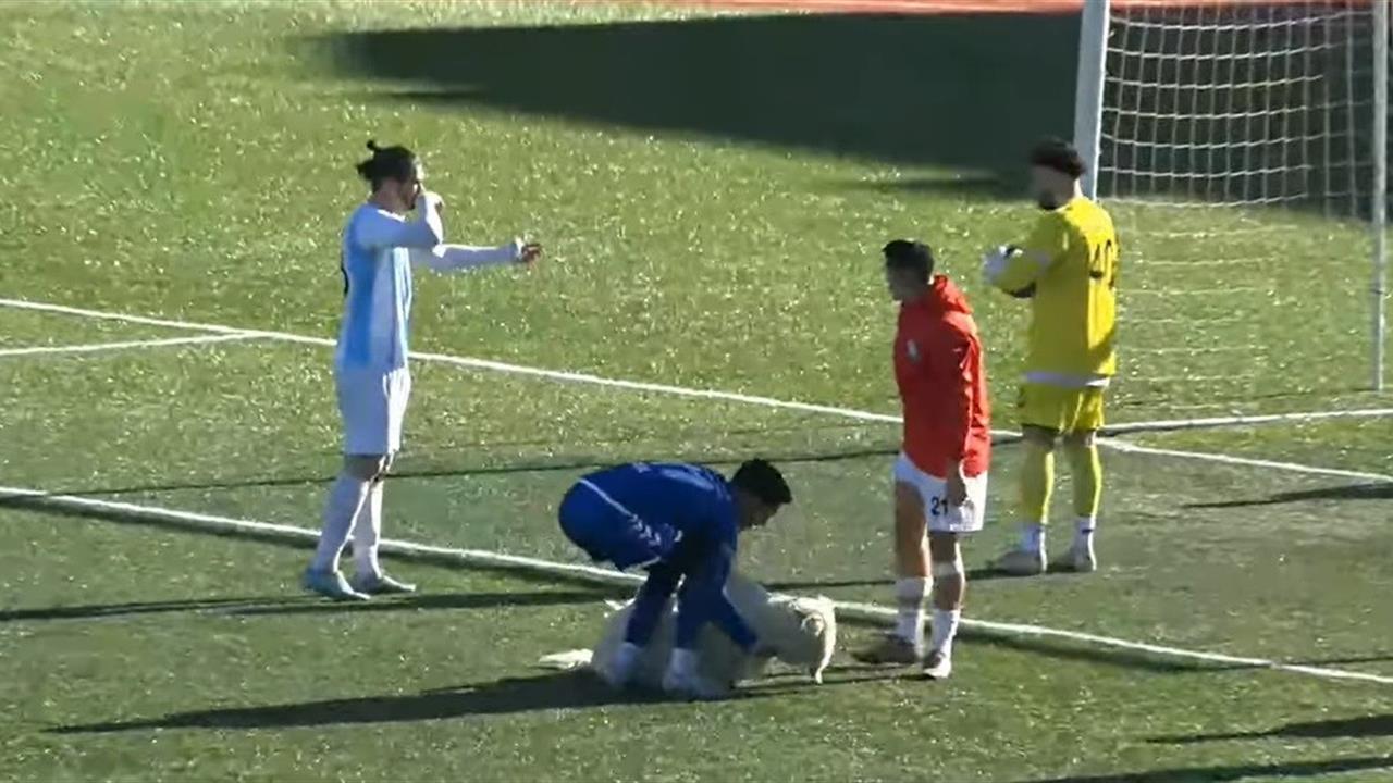 Tunceli'de düzenlenen Bölgesel Amatör Lig karşılaşmasında, Dersimspor'un Serhat Ardahan'ı ağırladığı maçta, beklenmedik bir olay yaşandı. İkinci yarıda, ceza sahasına giren bir köpek, kalenin önünde uyumaya başladı. Bu durum, hem futbolcuları hem de izleyicileri gülümsetti. Maçın durduğu anlarda futbolcular, köpeği saha dışına çıkarmak için çeşitli çabalar gösterdi ancak başarılı olamadı. Bunun üzerine bir stadyum görevlisi, köpeği uyandırmak için üzerine az miktarda su sıçratmayı denedi. Su sıçratılmasıyla uyanan köpek, daha sonra görevli tarafından saha dışına yönlendirildi. Köpeğin gitmesinin ardından maç kaldığı yerden devam etti ve taraflar 1-1'lik sonuçla sahadan ayrıldı. Bu ilginç olay, Tunceli'deki futbol karşılaşmasına damga vurdu ve izleyiciler arasında keyifli anlar yaşanmasına neden oldu.