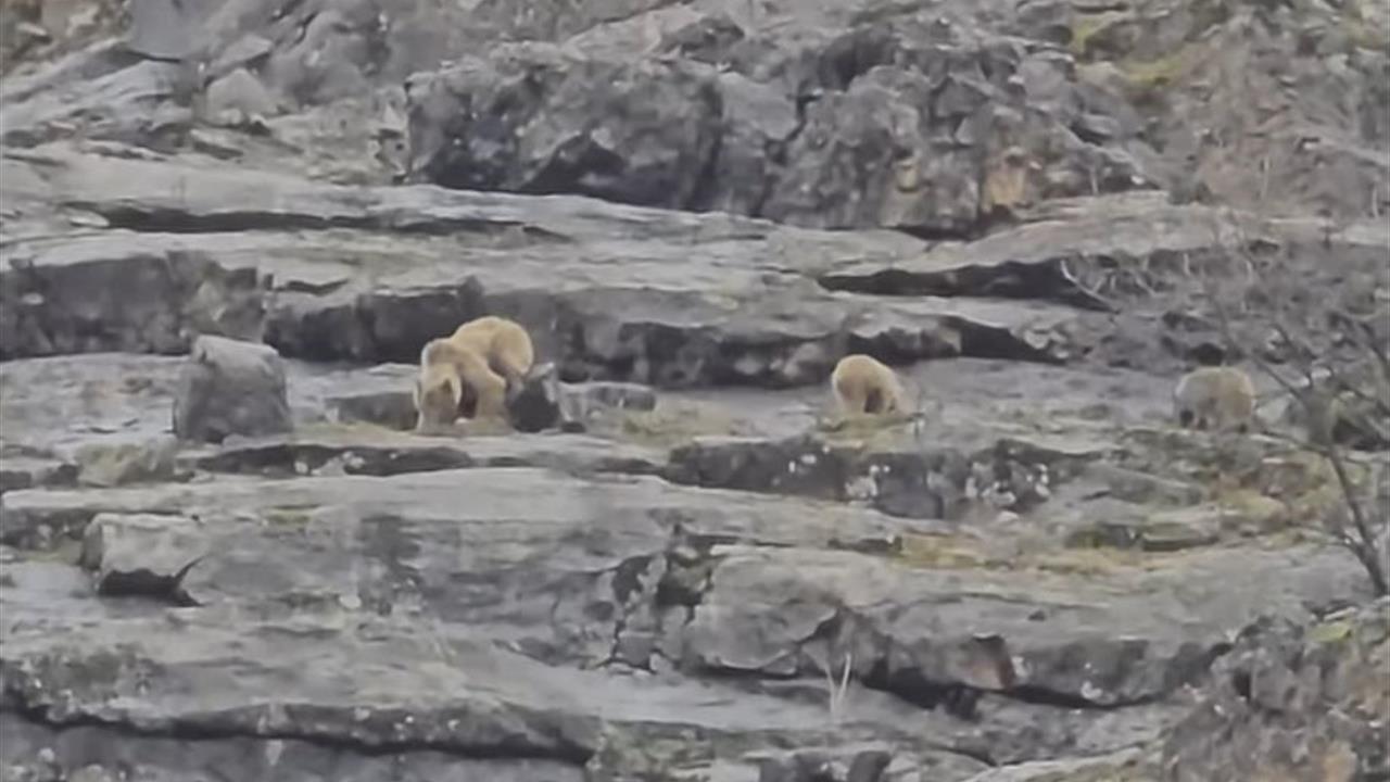 Tunceli'deki Munzur Vadisi'nde, doğa koruma görevlisi tarafından anne ayı ve yavruları görüntülendi. Görüntülerde, ayıların yiyecek aradığı ve ardından ortadan kaybolduğu görüldü.