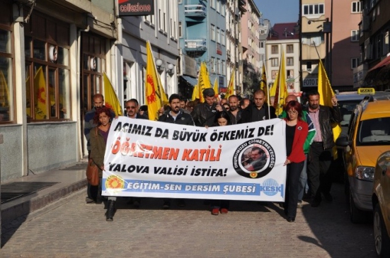 Tunceli'de Eğitim ve Bilim Emekçileri Sendikası (Eğitim-Sen) Dersim Şubesi, Yalova Valisi Selim Cebiroğlu'nun azarlamasının ardından kalp krizi geçirerek vefat eden öğretmen Halil Serkan Öz için yürüyüş gerçekleştirdi. Moğultay Mahallesi Sanat Sokağı'nda toplanan öğretmenler, Seyit Rıza Meydanı'na doğru yürüdü. Yürüyüş sırasında, Yalova Valisi'nin istifası talep edildi. Eğitim-Sen Dersim Şube Başkanı Hasan Ölgün, "Bu valinin derhal istifa etmesini istiyoruz, daha fazla can kaybı yaşanmadan" şeklinde açıklama yaptı. Ayrıca, Milli Eğitim Bakanı'nın sessizliğinin de eleştirildiği bildirildi. Ölgün, öğretmen Halil Serkan Öz için bir saat ders yapmayan öğretmenlerin listesinin Tunceli Emniyet Müdürlüğü tarafından istendiğini ifade ederek, bu durumu kınadı. Yürüyüşün ardından, eğitmenler alkışlarla slogan attı ve daha sonra sessizce dağıldı.