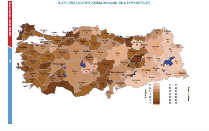 Sağlık Bakanlığı, Türkiye Kamu Hastaneleri Kurumu aracılığıyla, illere göre sezaryen doğum oranlarını belirleyen bir çalışma gerçekleştirdi. Bu çalışmada devlet, üniversite ve özel hastanelerdeki doğumlar incelendi. Verilere göre, devlet hastanelerindeki sezaryen oranı yüzde 37, üniversite hastanelerinde yüzde 67 ve özel hastanelerde ise yüzde 70 seviyesinde bulunuyor.