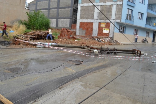 Manisa’nın Turgutlu ilçesinde aşırı yağışlar nedeniyle bir elektrik direği yerinden devrildi. Saat 15.40 sıralarında Selvilitepe Mahallesi'nde meydana gelen olayda, sürücü Özgür Güneş yönetimindeki 45 TT 610 plakalı minibüs, yolcu indireceği sırada direğin tellerinin üzerine düşmesiyle panik dolu anlar yaşandı. Yolcular, büyük bir korkuyla minibüsten dışarı fırladı.