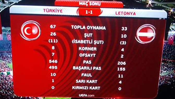 Bu arada A Milli Futbol Takımı'nın 700. golünü Letonya karşısında 77. dakikada Selçuk İnan attı.