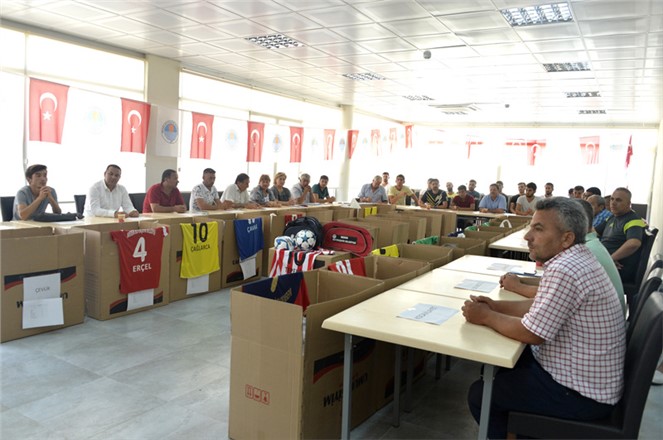 8 Temmuz’da başlayacak olan Fındıkpınarı Futbol Turnuvası için her takıma, forma takımı, antrenman topu, maç topu, çanta, tozluk, kaptanlık bandı, kaleci takımı gibi gerekli malzemeler verildi.