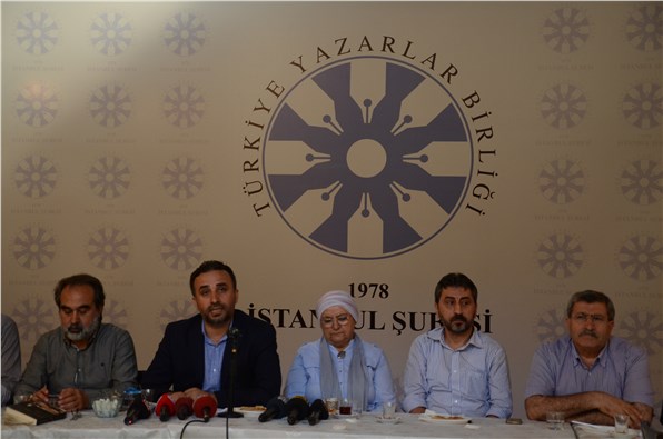 Türk ve Kürt yazarlar, son günlerde artan terör olaylarıyla ilgili bir araya gelerek, artan terör olayları ve toplumsal gerginlik üzerine ortak bildiri yayınladı. Türkiye Yazarlar Birliği İstanbul Şubesi’nde toplanan yazarlar adına Türkiye Yazarlar Birliği Başkanı Mahmut Bıyıklı, açıklamayı okudu. Bıyıklı, “Tarih bugün hepimize büyük sorumluluklar yüklemektedir. Bu sorumlulukta en büyük pay medyaya, siyaset kurumuna ve aydınlara düşmektedir. Medya sorumluluğunun bilincinde davranmalı yangına körükle gitmekten vazgeçmelidir. Siyasilerimiz gündelik kısır çekişmelerinden uzaklaşarak Türkiye’nin önünü açacak politikalar gerçekleştirmelidir. Aydınlarımız da ayrıştırıcı dil değil birleştirici dil kullanmalıdır. Çeşitli tahriklerle sokağa çekilmeye çağrılan gençlerimize yakın tarihte yaşanılan pişmanlıkları hatırlatıyoruz. Bu kirli kavganın hiçbir zaman galibi yoktur. Farklılıklarımız zenginliklerimizdir. Her şeye rağmen suna yürekten inanıyoruz ki derin irfan sahibi halkımız Türk’üyle, Kürt’üyle, Alevi’siyle ve Sünni’siyle medeniyet birikiminden gelen ferasetiyle bu oyuna gelmeyecek sağduyusunu kaybetmeyecektir. Terörü telin ediyoruz, halkımızı bir kere daha sağduyuya çağırıyoruz.” diye konuştu.