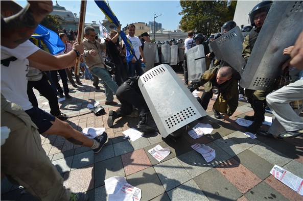 MOSKOVA - Ukrayna parlamentosu Rada’da çevre yönetimlerin güçlerinin artırılması ile ilgili anayasal düzenleme sırasında aşırı milliyetçi Sağ Sektör grubu muhalif gruplara baskın düzenledi. Grup güvenlik güçlerine taş ve sopalarla saldırırken, polisin üzerine atılan el yapımı bir bomba nedeni ile 100'e yakın kişi yaralandı.