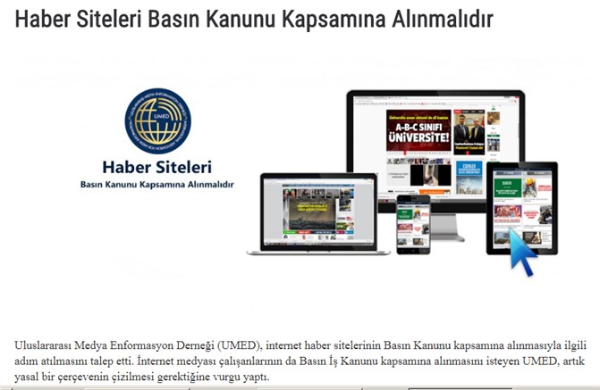 UMED tarafından yapılan yazılı açıklamada haber sitelerinin basın kanunu kapsamına alınmasına ilişkin bir adım atılması talep edildi.