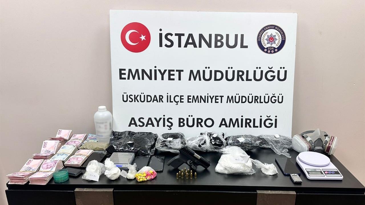 İstanbul Emniyet Müdürlüğü, uyuşturucu madde ticaretini önlemek amacıyla Üsküdar'da kapsamlı bir çalışma yürüttü. 4 Şubat saat 01.00 sıralarında, uyuşturucu ticareti yaptığı belirlenen şahıslar takibe alındı. Bulgurlu Mahallesi ve Armağanevler Mahallesi'ndeki 3 ayrı adrese eş zamanlı olarak operasyon düzenlendi. Operasyonda S.A. (30), K.K. (30) ve R.Y. (36) isimli şüpheliler yakalandı. Yapılan aramalarda; 504 gram kokain, 40,4 gram taş kokain, 55,3 gram toz kokain, 753,9 gram esrar, bir adet sıvı amonyak çözeltisi bulunan şişe, bir adet gaz maskesi, üç adet hassas terazi, bir adet metal öğütücü kutu, bir adet sigara sarma kağıdı, bir adet ruhsatsız tabanca, bir adet şarjör ile 11 adet fişek, bir adet cep telefonu ve 110 bin 600 TL ile 20 Euro ele geçirildi.