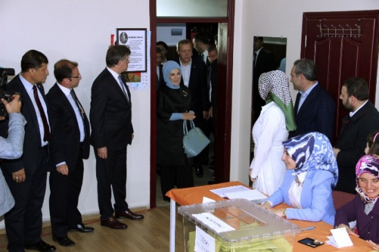 Cumhurbaşkanı Recep Tayyip Erdoğan, eşi Emine Erdoğan ve kızı Sümeyye Erdoğan ile birlikte oyunu Saffet Çebi İlkokulu'nda kullandı. Oy verme işleminin ardından seçimlerle ilgili değerlendirmelerde bulunan Erdoğan, Türkiye'nin alışılmışın dışında bir süreç yaşadığını ifade etti. "Yapılan bu seçimler, istikrar ve güven işareti veriyor" diyen Erdoğan, bu durumun ülkeye büyük kazanımlar sağladığını belirtti.