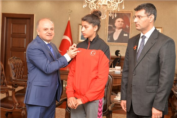 Atıcılık branşında Dünya Şampiyonluğu bulunan ve geçtiğimiz Ekim ayında Güney Kore’de düzenlenen ‘Askeri Olimpiyat Oyunları’nda olimpiyat şampiyonu olan Yusuf Dikeç ile geçtiğimiz Temmuz ayında Fransa’da düzenlenen ‘Yıldızlar Taekwando Avrupa Şampiyonası’nda 59 kiloda Avrupa Şampiyonu olan ve geçtiğimiz Ağustos ayında Dünya Taekwando Federasyonu (WTF) tarafından yine Güney Kore’de düzenlenen ‘Dünya Yıldızlar Taekwando Şampiyonası’nda Dünya ikinciliğini elde eden Huri Korkut’u makamında kabul eden Vali Çakacak, uluslararası arenada büyük bir başarıya imza atan şampiyon sporcuların mutluluklarına ortak oldu.
