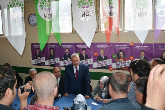 Van'da yaklaşan genel seçimler öncesinde, AK Parti Van Milletvekili Adayı Faruk Alpaslan ve beraberindekiler, Çatak ilçesindeki HDP seçim bürosunu ziyaret etti. AK Parti İlçe Koordinatörü Nusret Uçak ve İlçe Başkanı Tahsin Babur'un da aralarında bulunduğu grup, ilçe girişinde karşılandı. Ardından esnaf ziyaretleri gerçekleştiren adaylar, cadde üzerindeki HDP seçim bürosuna geçerek burada İlçe Eş Başkanı Sevgi Eraslan ve vatandaşlarla bir araya geldi. HDP'liler tarafından sıcak bir şekilde karşılanan AK Parti adayları, yaklaşık 20 dakika süren ziyarette çeşitli sorularla karşılaştı. Bu sorular arasında "Kürt sorunu var mı, yok mu?" ve "HDP'nin barajı geçmesini istiyor musunuz?" gibi konular da yer aldı. Adaylar, "14 yıl önce sadece Olağanüstü Hal Bölgesi'nin kalkmasını istiyorduk, şimdi Kürtçe kanallarımız var. Kürt sorunu çözülecek ve bu konuda AK Parti önemli çabalar gösterdi," yanıtını verdiler. Ziyaretin ardından HDP seçim bürosundan ayrılan AK Parti heyeti, bilgi mahallesine giderek 7 Haziran seçimleri için destek talep etti.
