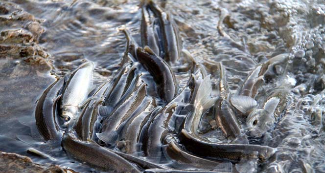 İnci kefali balıkları, Van Gölü'nün sodalı sularında üreme döneminde, akıntının tersine doğru yüzerek büyük bir çaba harcıyor. Göç esnasında karşılarına çıkan engelleri aşmak için zıplayarak ilerliyorlar. Muradiye İlçe Emniyet Müdürlüğü ekipleri, göçü izlemeye gelen vatandaşları bilgilendirirken, yasak döneminde balık avlamamaları konusunda uyarılarda bulunuyor.
