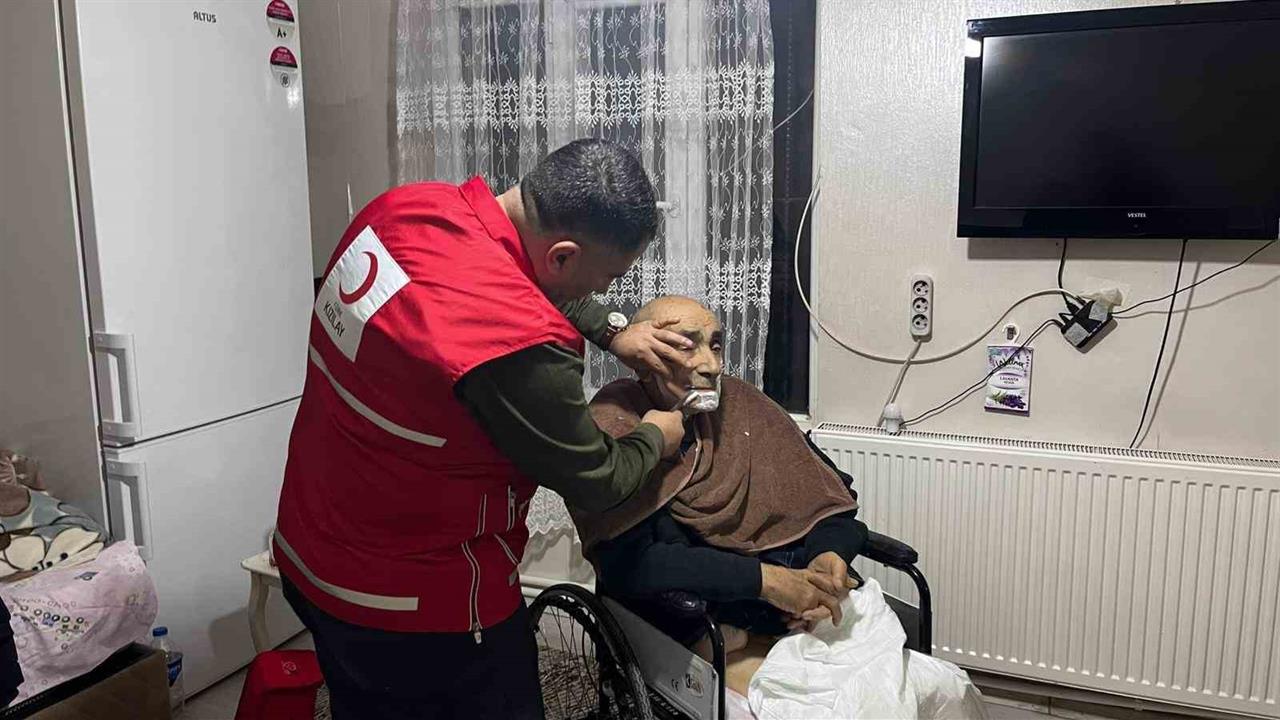 Türk Kızılay Muradiye Şubesi, Ramazan Bayramı öncesi yaşlı vatandaşların tıraşını evlerinde ücretsiz olarak gerçekleştiriyor.