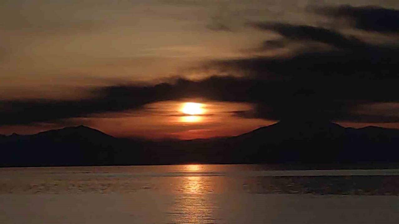 Doğu'nun incisi Van'da, akşam saatlerinde gökyüzünde göz alıcı bir renk cümbüşü yaşandı. Güneş, Van Gölü üzerinden süzülerek batarak, gümüş gibi parlayan ayın doğuşuna zemin hazırladı. Van Kalesi ve Edremit sahilinde toplanan vatandaşlar, gün batımının eşsiz kızıllığına tanıklık etti. Güneşin Van Gölü'nün sodalı sularına vuran son ışıkları, ufuk çizgisini ateş kırmızısına boyadı. Güneş kaybolduktan sonra, Erek Dağı'nın kuzeyinden yükselen dolunay, kentin üzerine ışık huzmeleri yaydı.