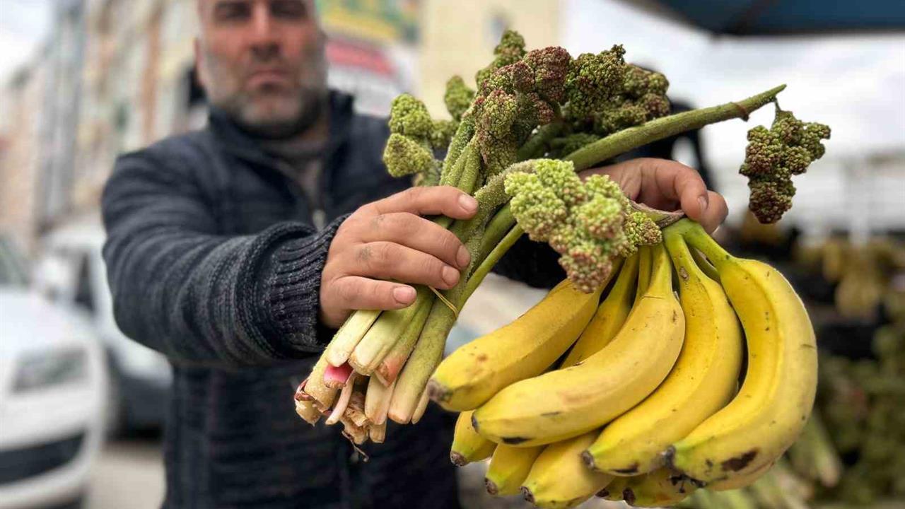 Van’ın sarp dağlarında doğal olarak yetişen yayla muzu, havaların ısınmasıyla birlikte tezgahlarda yerini aldı. Seyyar satıcılarda ve manavlarda bulunan uçkunun fiyatı oldukça dikkat çekici. İthal muzun kilogramı ortalama 150 liradan satılırken, yayla muzunun kilogram fiyatının 400 liraya kadar yükseldiği gözlemleniyor. Satıcılar, bu fiyat artışını toplama sürecinin zorluğuna ve ürünün sınırlı satış süresine bağlıyor.